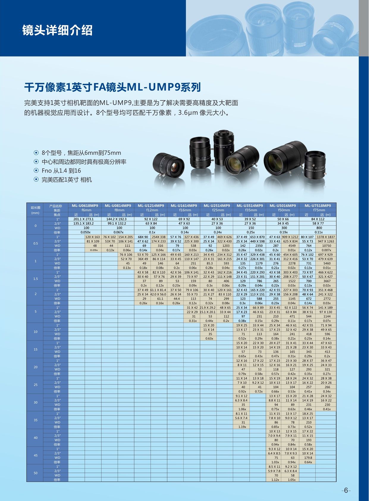 千萬(wàn)像素1英寸 FA鏡頭ML-UMP9系列
