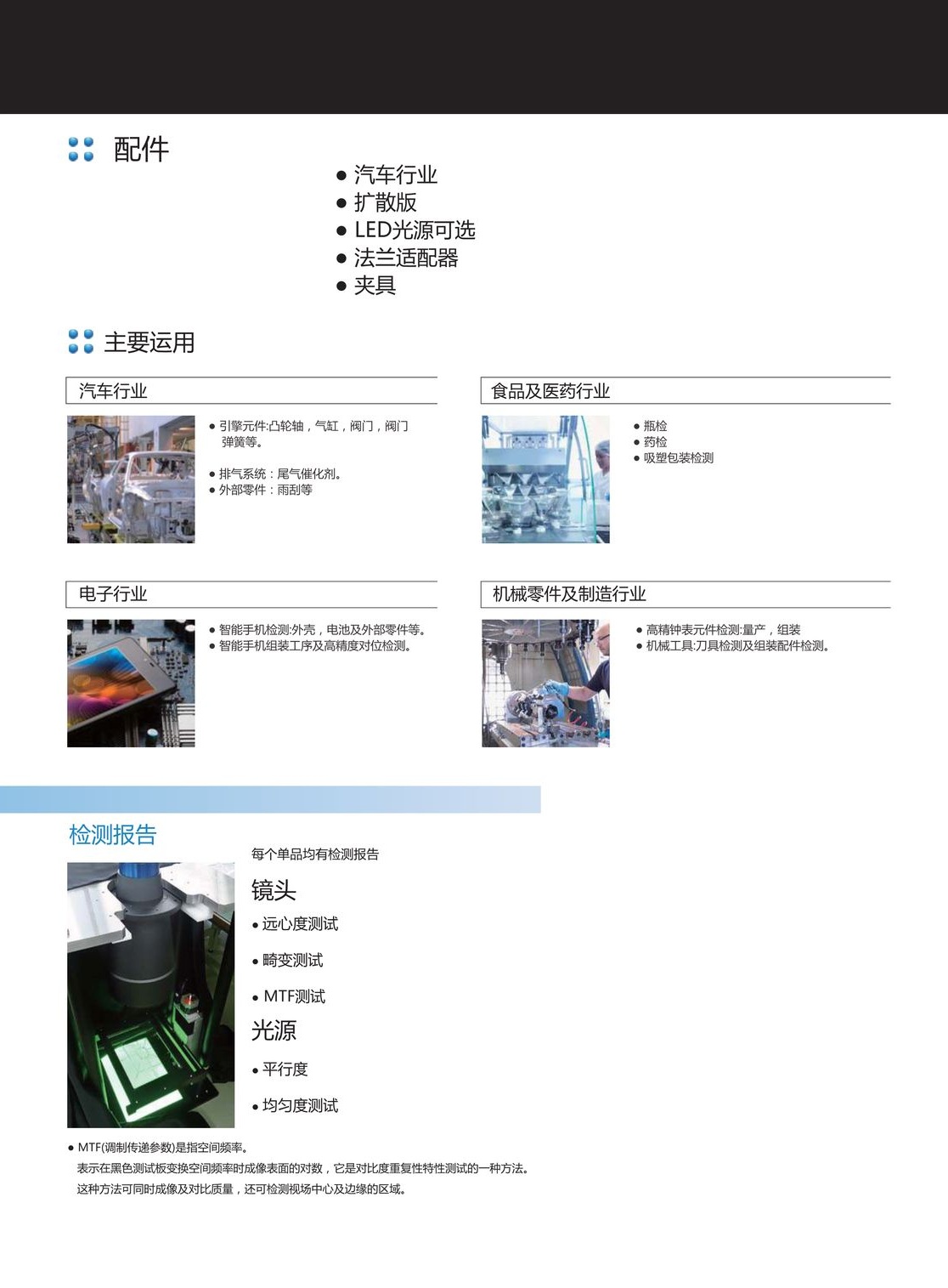 低倍率超大視野雙側遠心鏡頭及光源MTL/MTI系列