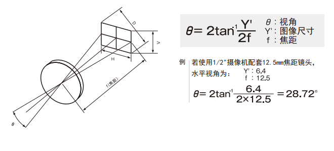 視角是用角度表示在規(guī)定的像場中能夠攝入的范圍。通常是指鏡頭處于無限遠(yuǎn)時的角度。焦距相同,若像場大小不同,視角則不同。