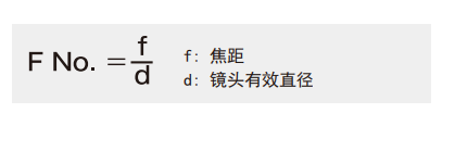 光闌指數(shù)(F)是影像亮度的一個表征。數(shù)值越小,亮度越高。通過焦距和鏡頭的有效直徑之比可以求出光闌指數(shù)。