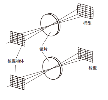 被攝物體經(jīng)過鏡頭拍攝后在成像面上變成彎曲的現(xiàn)象。畸變分為桶型畸變和枕型畸變。
