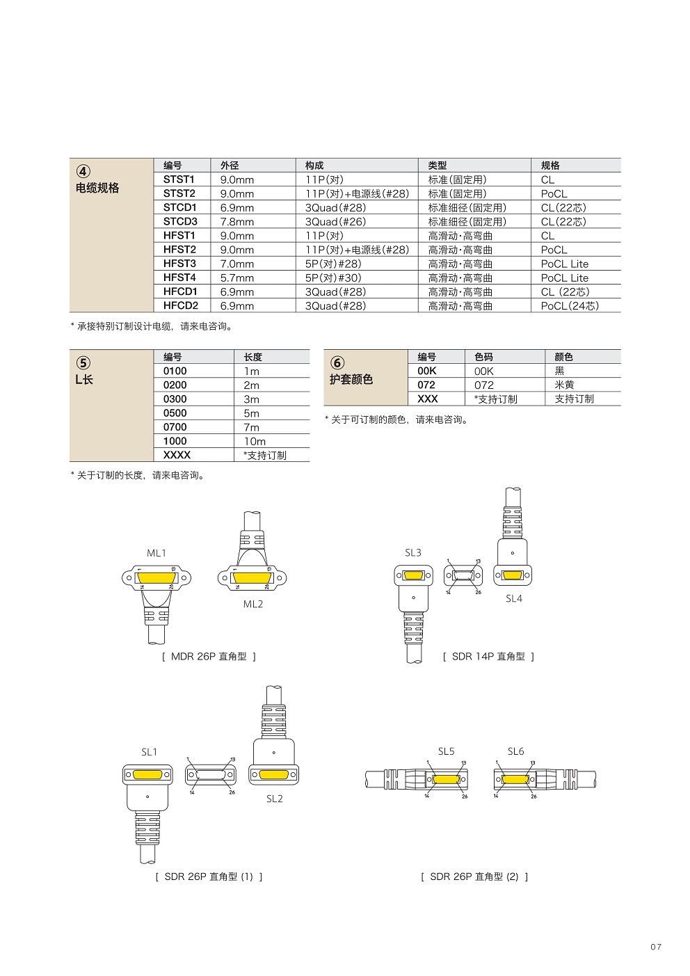 ■可以選擇適用于固定部的標(biāo)準(zhǔn)型?細(xì)徑型:也可選擇適用于可動部的高彎曲型/高滑動型電纜。
