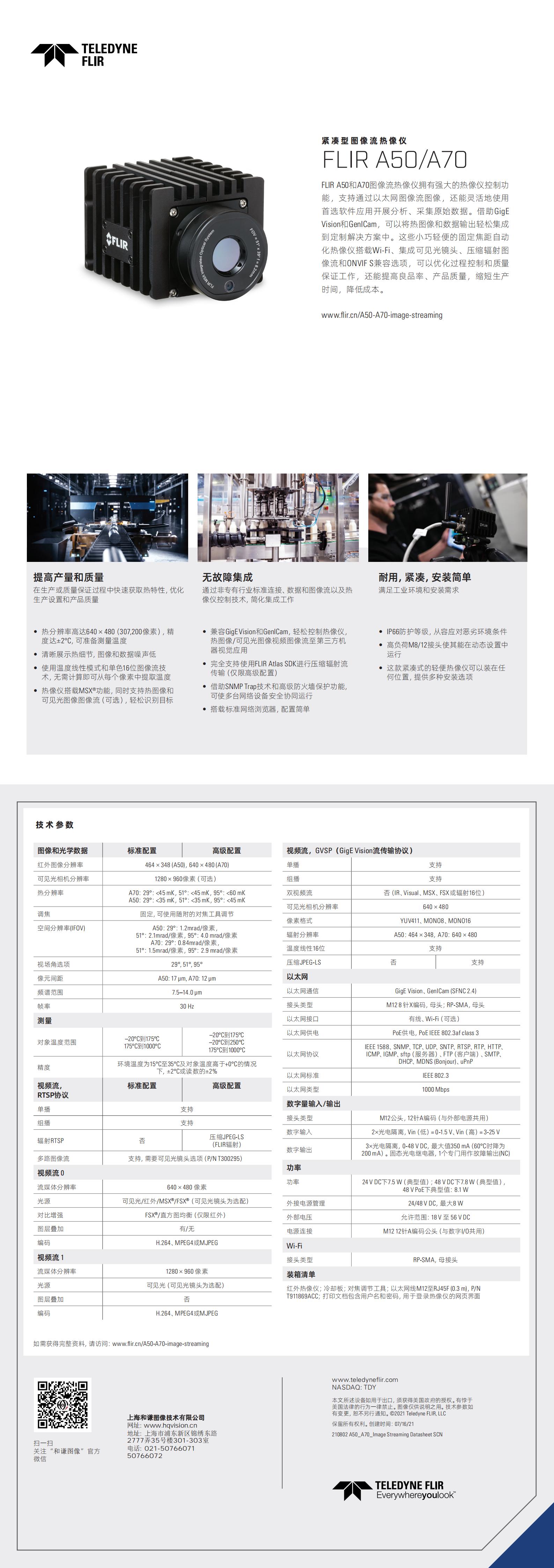 FLIR A50和A70熱像流紅外熱像儀是如下用戶的正確選擇:需要基于以太網(wǎng)的熱像儀控制能力和圖像流,還可以使用自己喜歡的軟件應用程序,靈活進行熱特性相關的分析和原始數(shù)據(jù)收集。這些定焦自動相機小巧輕量,可選配Wi-Fi、集成式可視熱成像儀、壓縮式輻射圖像流以及ONVIF S兼容性(僅限高級版),可優(yōu)化過程控制和品質(zhì)保證,從而改善產(chǎn)品的產(chǎn)量、質(zhì)量、產(chǎn)出時間,并降低成本。